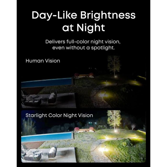 Uživajte v osupljivi 4K Ultra HD ločljivosti za neverjetno ostro, realistično sliko s 122° vidnim poljem, ki omogoča razširjeno pokritost – popolno za zajemanje dinamičnih okolij v izjemnih podrobnostih. - Nočni barvni pogled Starlight